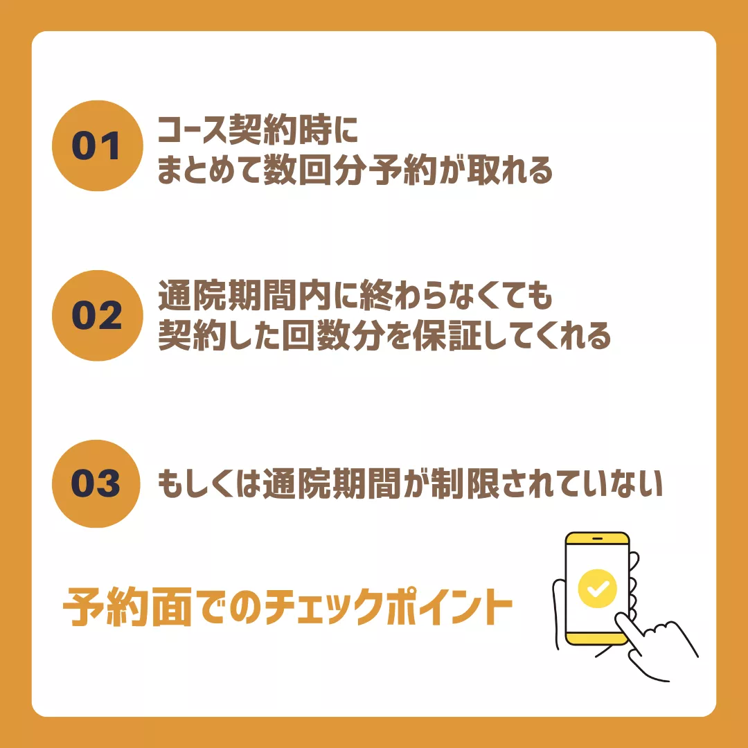 せっかく契約したにもかかわらず「予約が全く取れず通うことができない」と不満を抱えている方も少なくありません。通院期間が限られていると契約した回数分を消費できず、お金まで無駄にしてしまいます。