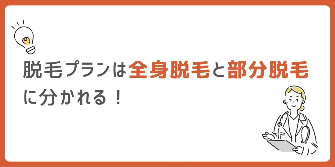 気になる部位のみの「部分脱毛」すべての部位ができる「全身脱毛」があります。