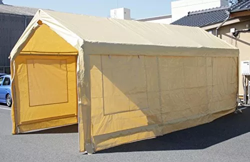 大型車でも楽々保管できる、とにかく大きいガレージテントです。テント自体に窓が付いており、災害時には多くの方が入ることのできるテントとして使用できます。また、ファスナーで簡単に開閉できます。