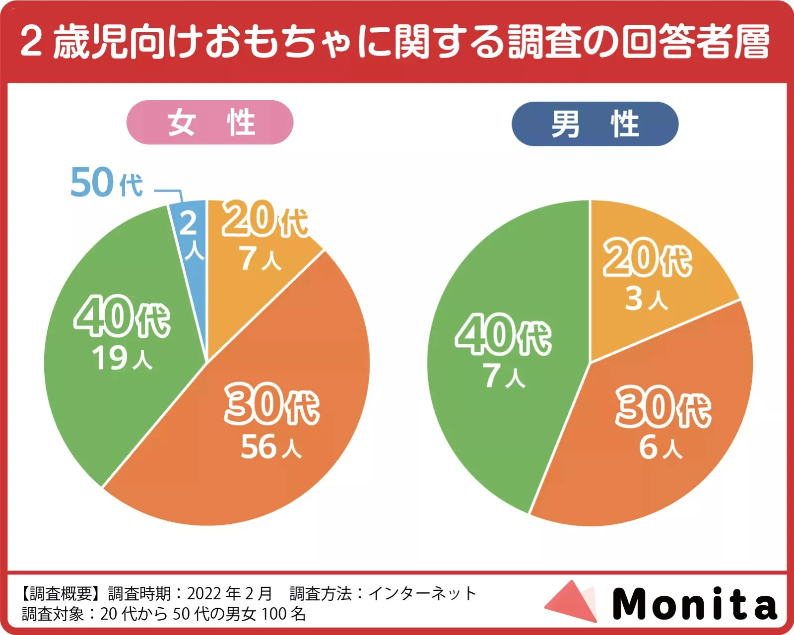 そこで今回は100人にアンケートを実施し、おすすめの2歳の子ども向けおもちゃについて調査しました。アンケート結果はランキング形式でご紹介します。プレゼントなどで購入を迷っている方はぜひ参考にしてください。