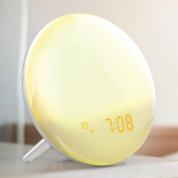 太陽の光と同等の20,000ルクスまで照らせる高機能な光目覚まし時計です。日の出モードや日没モードに加え、暖色や冷色など光色の設定も選べます。目覚ましとして使うのはもちろん、時差ボケ対策や日光不足による睡眠障害の方にもおすすめです。