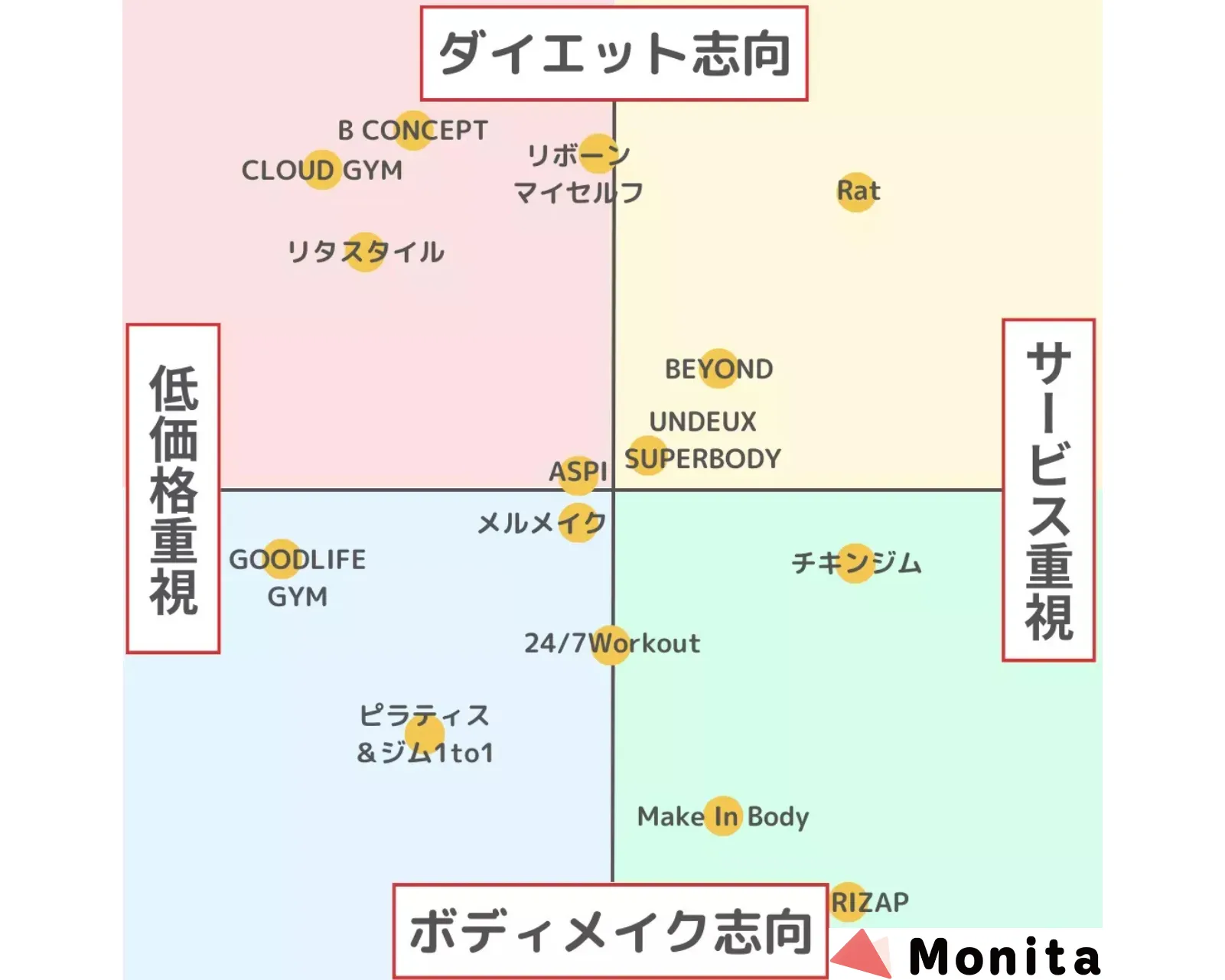 最もイメージしやすい比較方法が費用感です。利用料金が安いパーソナルジムばかりが魅力的に映りがちですが、金額は提供するサービスの質と量によって大きく変わります。