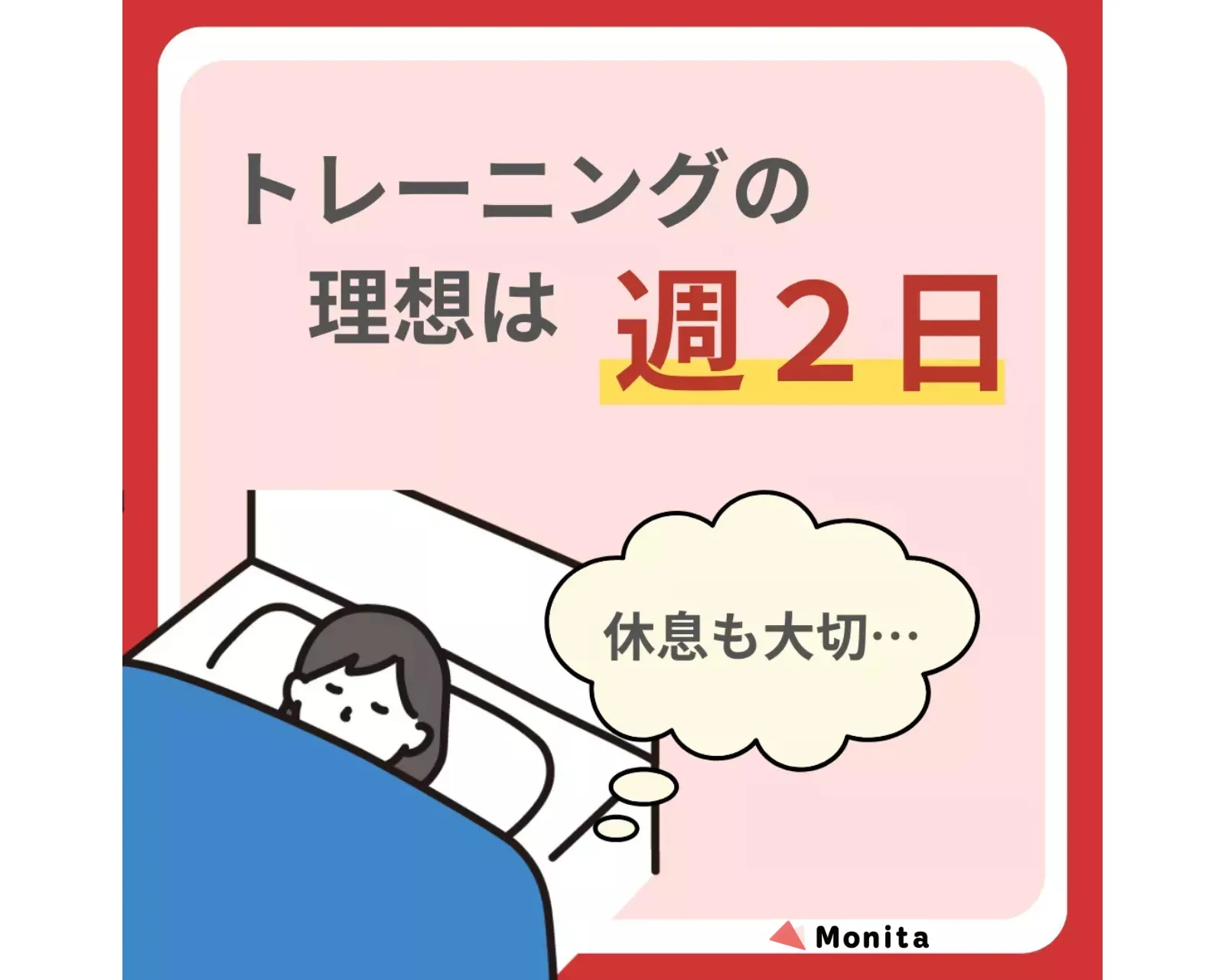 筋力トレーニングでありがちな「やればやるほどいい」という認識は誤りです。休息時間もトレーニングの一環と考えて、楽しみながら継続的に取り組みましょう。