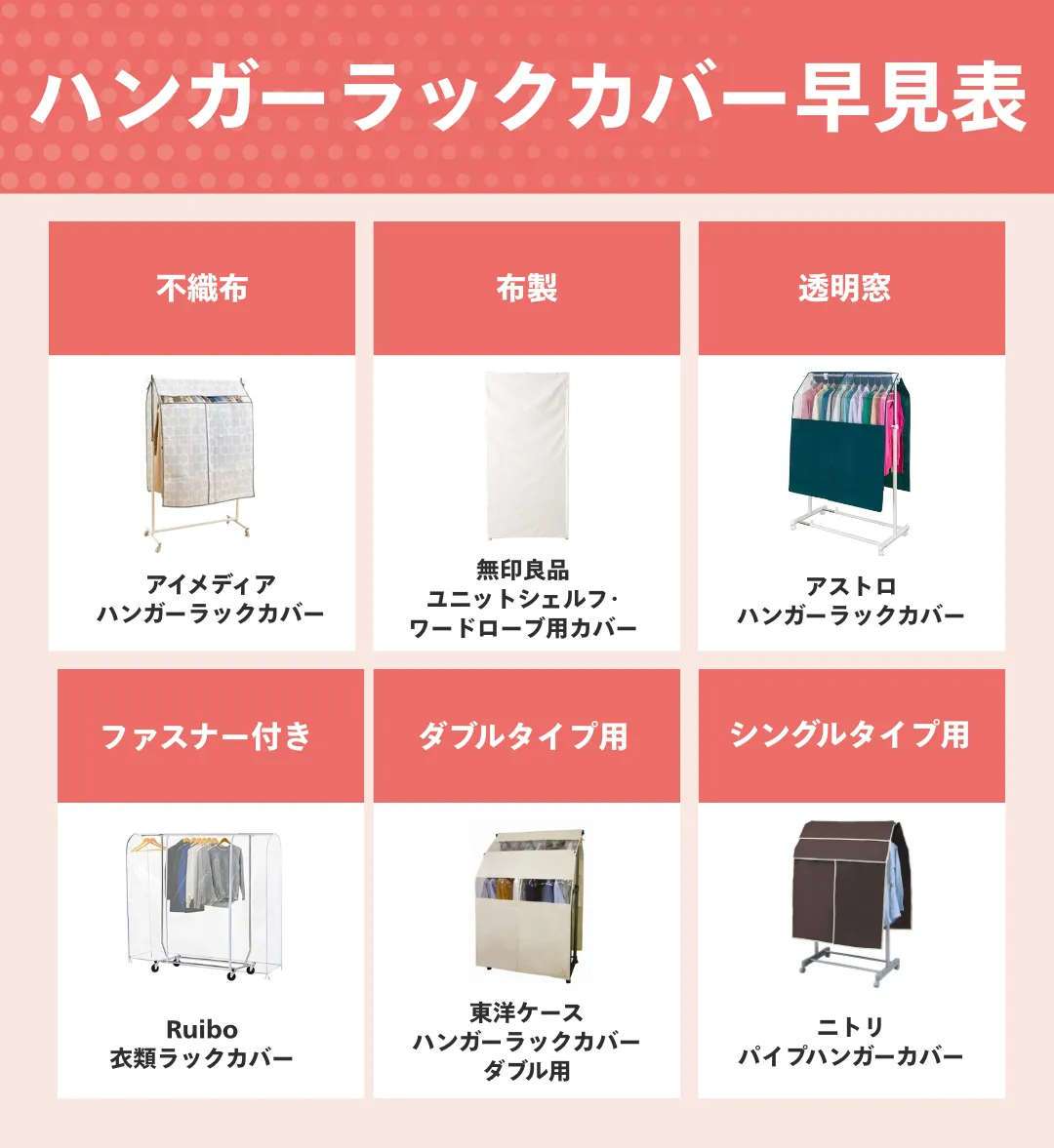 ハンガーラックのカバーは「何を重視するか」を明確にすることで、自分に合った一枚が選べます。カバー選びでチェックすべきポイントは、ズバリ以下です。