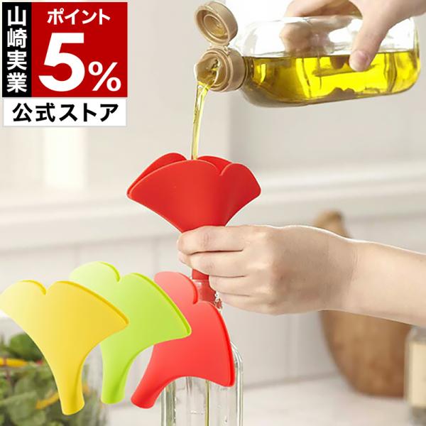 こちらの漏斗は独特なイチョウ型デザインで、収納時はコンパクトに収納ができて使うときには注ぎ口を広く確保ができるユニークな形状です。鮮やかなカラー展開でキッチンに配置しても華やかな印象です。