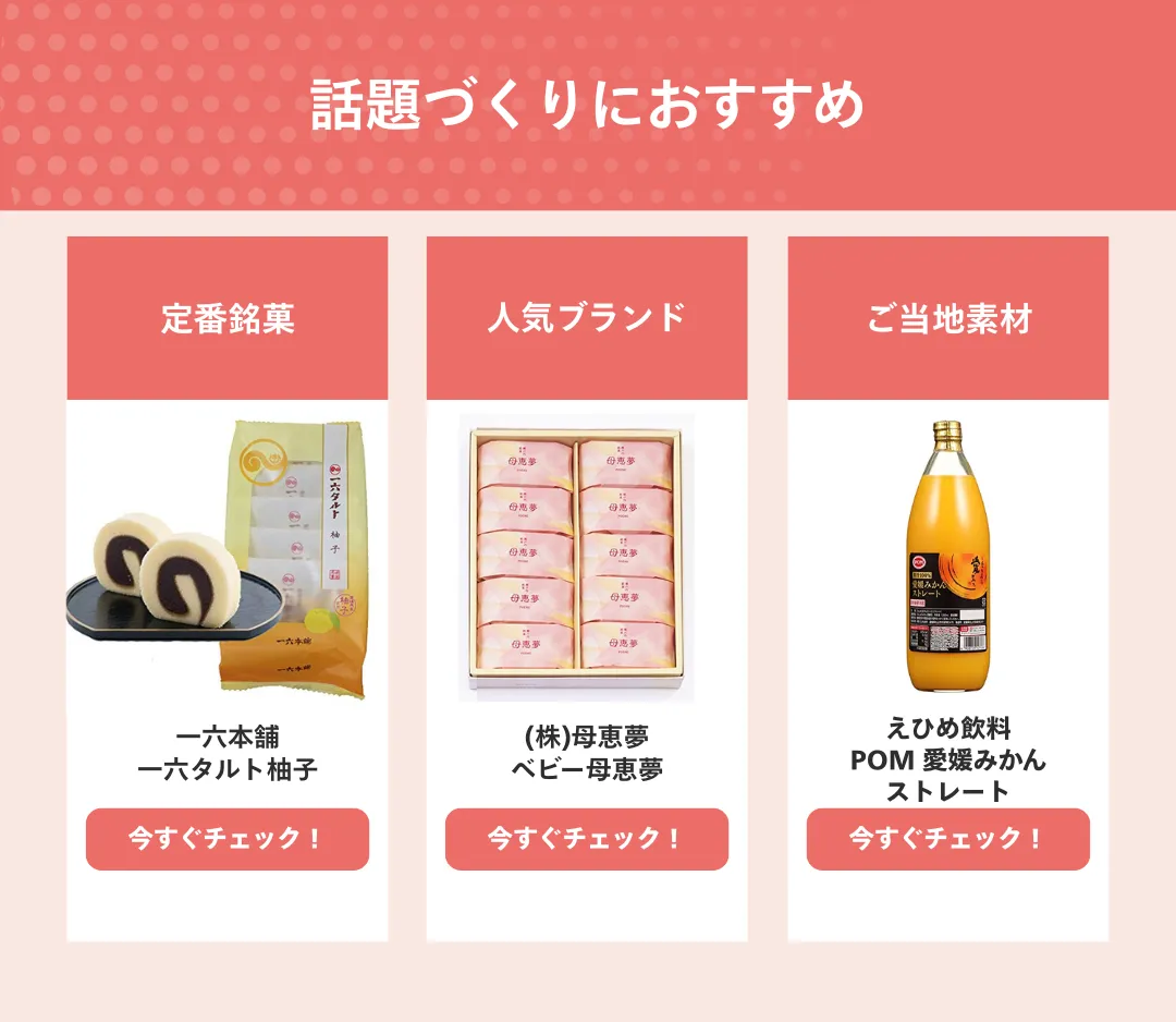 定番の銘菓や知名度が高いブランドのお土産は贈る側が選びやすいのはもちろん、受け取った側にとっても安心感があります。また、話のきっかにもなりやすく、相手が、その土地になじみがあれば思い出話を聞けるかもしれません。