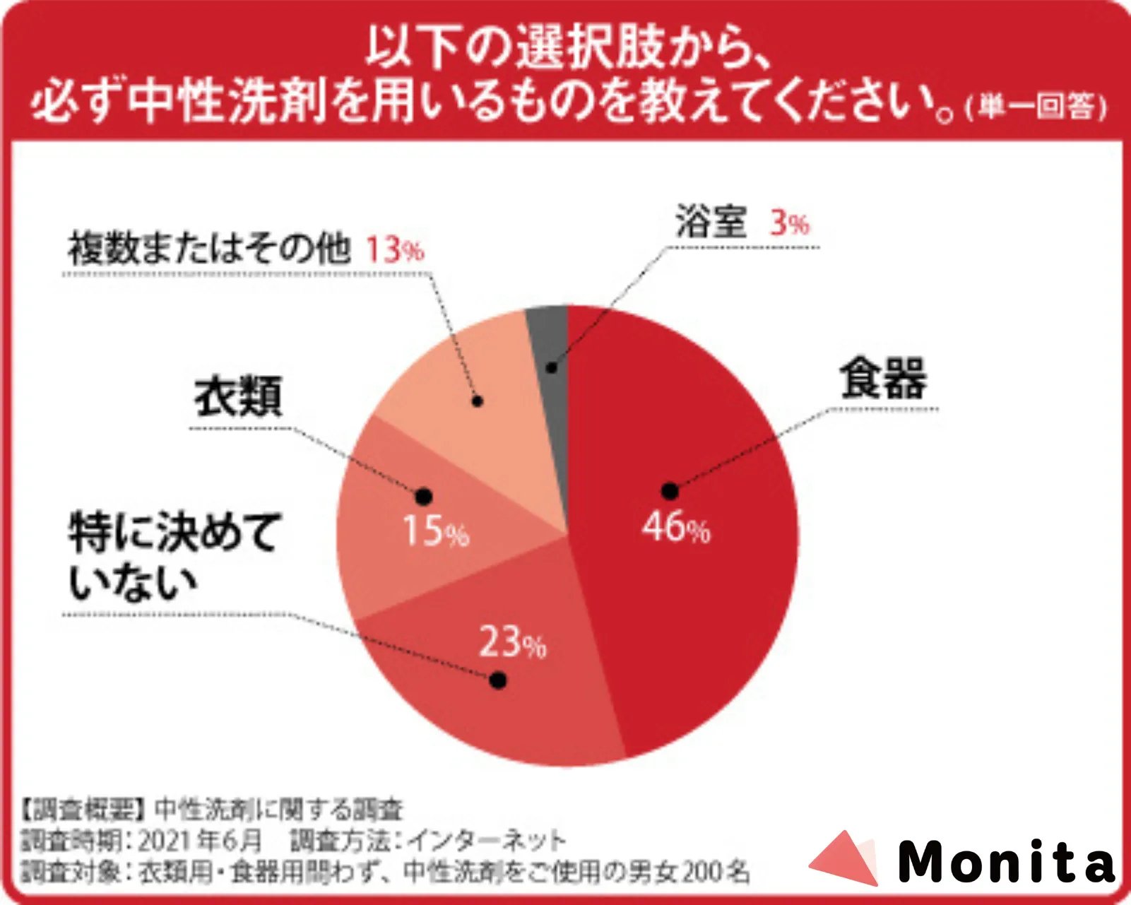 刺激が弱い中性洗剤、アンケートでは半数近い方が食器用洗剤に選んでいました。お皿洗いによる手荒れが気になる方でも、使いやすいのが魅力です。