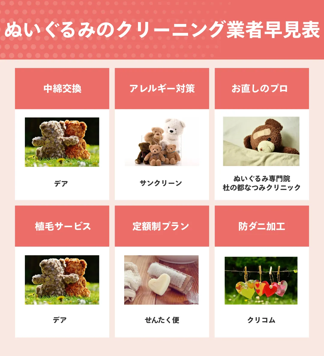 ぬいぐるみのクリーニングおすすめ早見表はこちら
