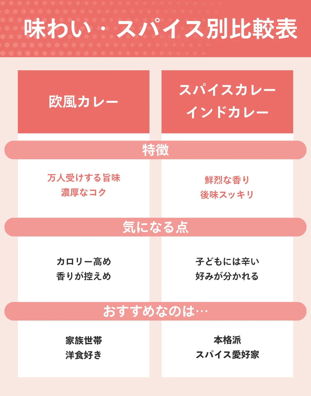 味わいの方向性とスパイスの鮮度感で選ぶ