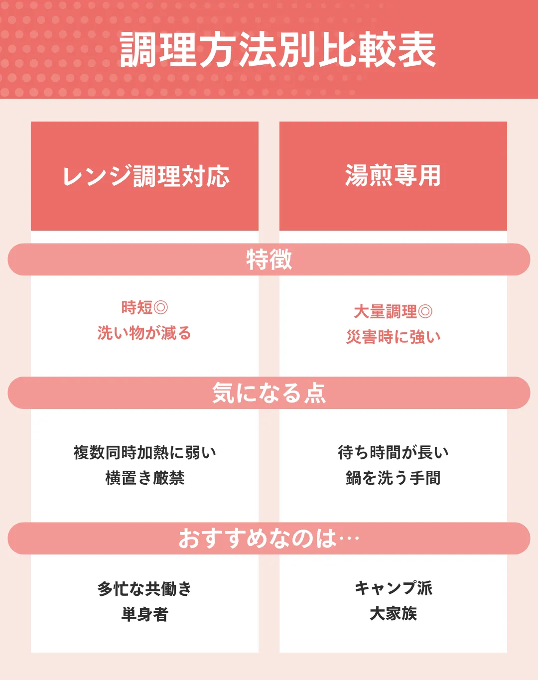 家事の時短と簡便さを最優先する方にはレンジ直接対応タイプ