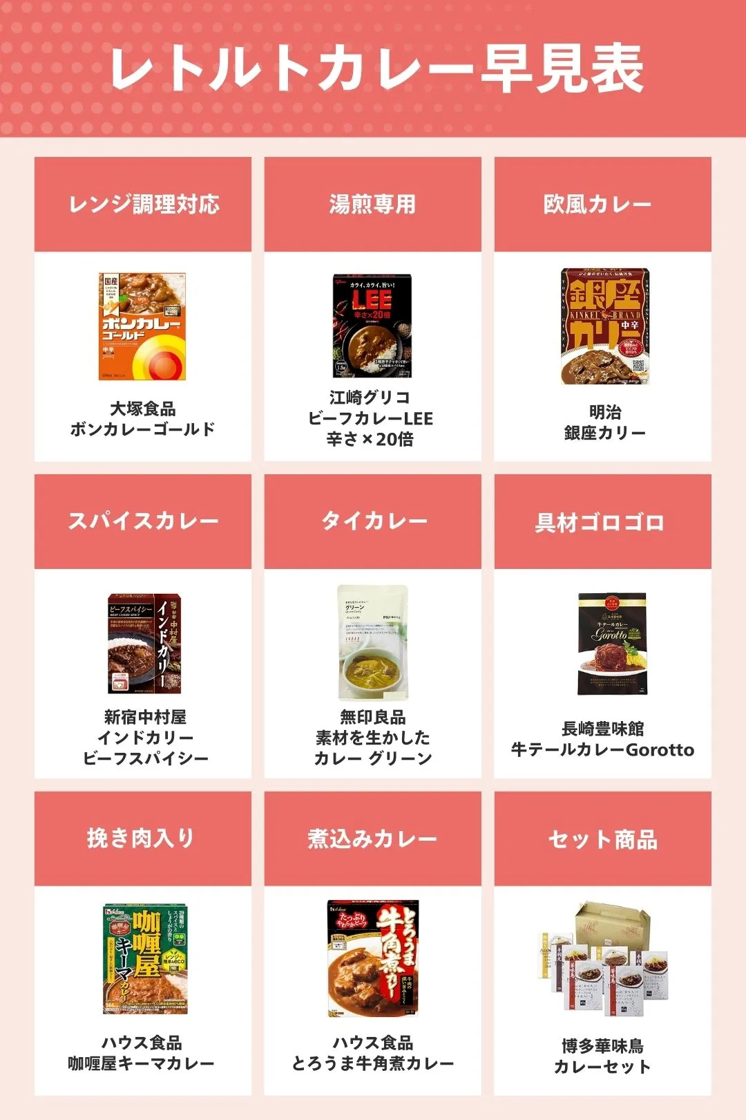 ここでは、通販サイトの口コミ調査を基準に選んだ「編集部おすすめのレトルトカレー4選」を紹介します。