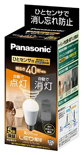 日本を代表する家電メーカーのPanasonic製のLED電球です。わずかな動きでもしっかり感知してくれるので、とても使い勝手がよく人気があります。消灯の約6秒前から減光してくれるので、子供やお年寄りが通る場所でも使いやすいです。