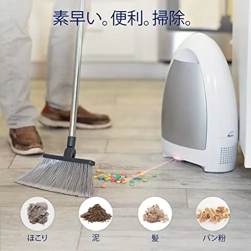 ベースの赤外線センサーに掃くだけで、自動的に髪・ほこり・ゴミをごみをキャニスターに吸い込む電動ちりとりです。オート・自動モードの切り替えができるため、ペットやお子さんでの誤作動を防ぎたい方にも適しています。