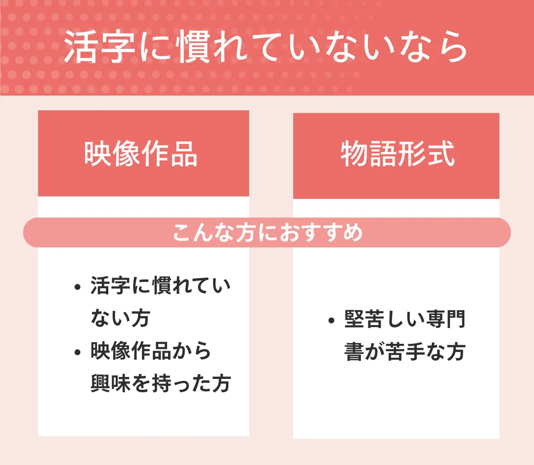 「歴史小説は難しそう」と感じる場合は、誰もが知っている有名な偉人を描いた作品や、現代的な言葉遣いで書かれた作品から入るのがポイントです。ビジネス書を読む感覚で、実生活におけるヒントを得るための読書としても有効です。