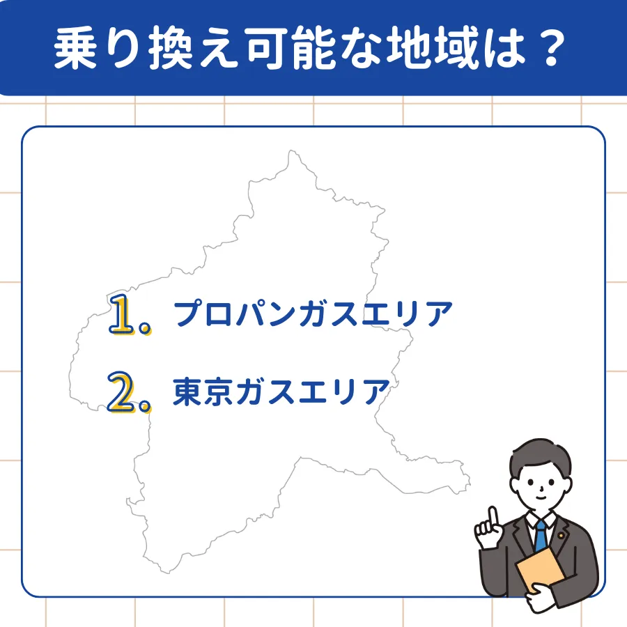 ※ 賃貸集合住宅はオーナーによってプロパンガス会社が指定される場合がほどんどのため、乗り換えできません。