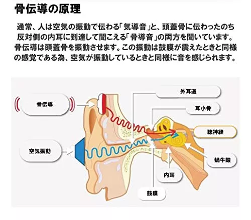 骨伝導イヤホンは頭蓋骨を震わせて聴くタイプなので、難聴になるのではと思っている方も多くいます。しかし人は普段から鼓膜と骨伝導の両方を使って音を聴いているので、耳で聞くのと相違ありません。
