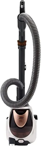 独自の高性能ファンモーターの強力なパワーでゴミを吸い取るキャニスター掃除機です。ヘッドは軽い力で前に進むので絨毯の掃除も楽にできるうえ、フローリングに付着した菌をふき取るブラシもついています。