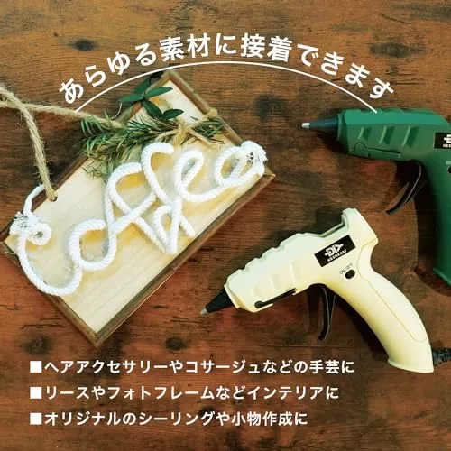- 付属品:グルーガン本体、グルースティック20本、USB充電ケーブル、日本語取扱説明書(ACアダプタは付属しません)