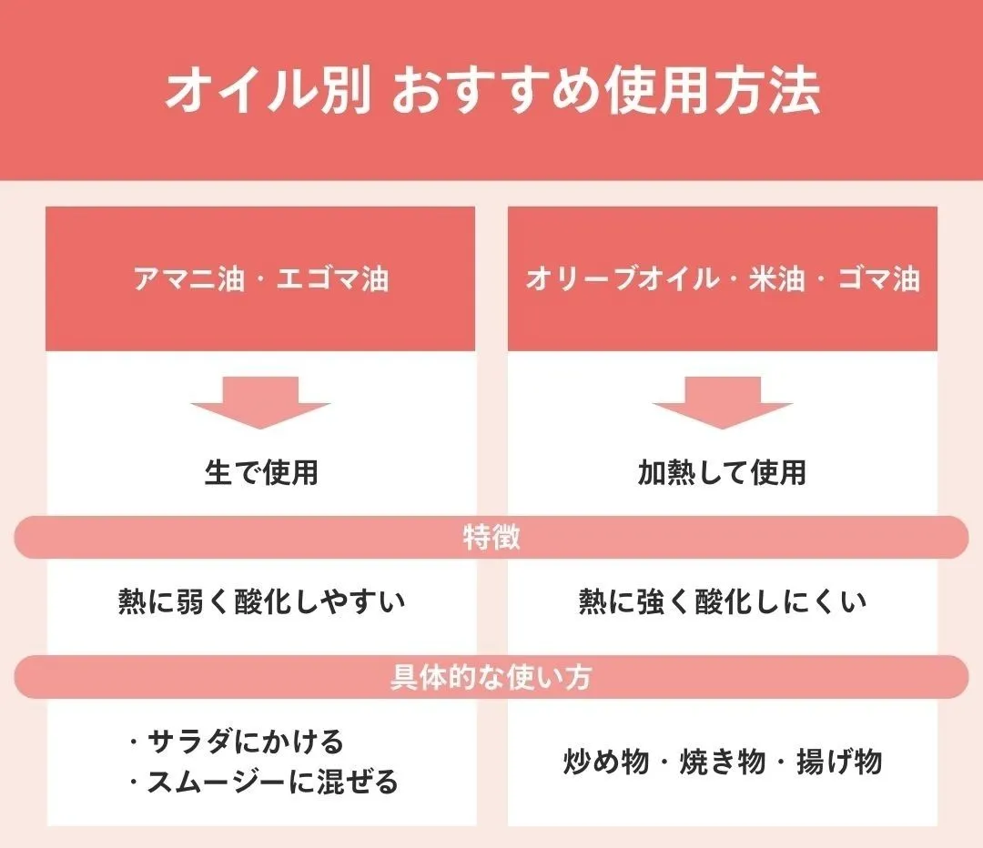 油によっておすすめの使い方は異なる
