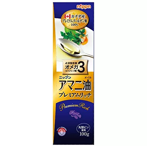 米だけコールドプレスして抽出した油です。α-リノレン酸を100gあたり55%以上含んでおり、小さじ1杯で1日分のオメガ3を摂取できます。製造は国内の工場で行われており、添加物・保存料も使われていないスーパーで買える安全な油です。