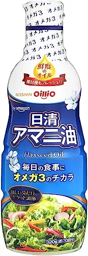 アマニ油は亜麻仁の種からとれる油で、必須脂肪酸であるα-リノレン酸を約60%・オレイン酸を約20%やビタミンEを豊富に含んでいます。美容や健康に気を使っている方におすすめです。独特の風味と苦味があり加熱に弱いので、生で摂取するのに向いています。