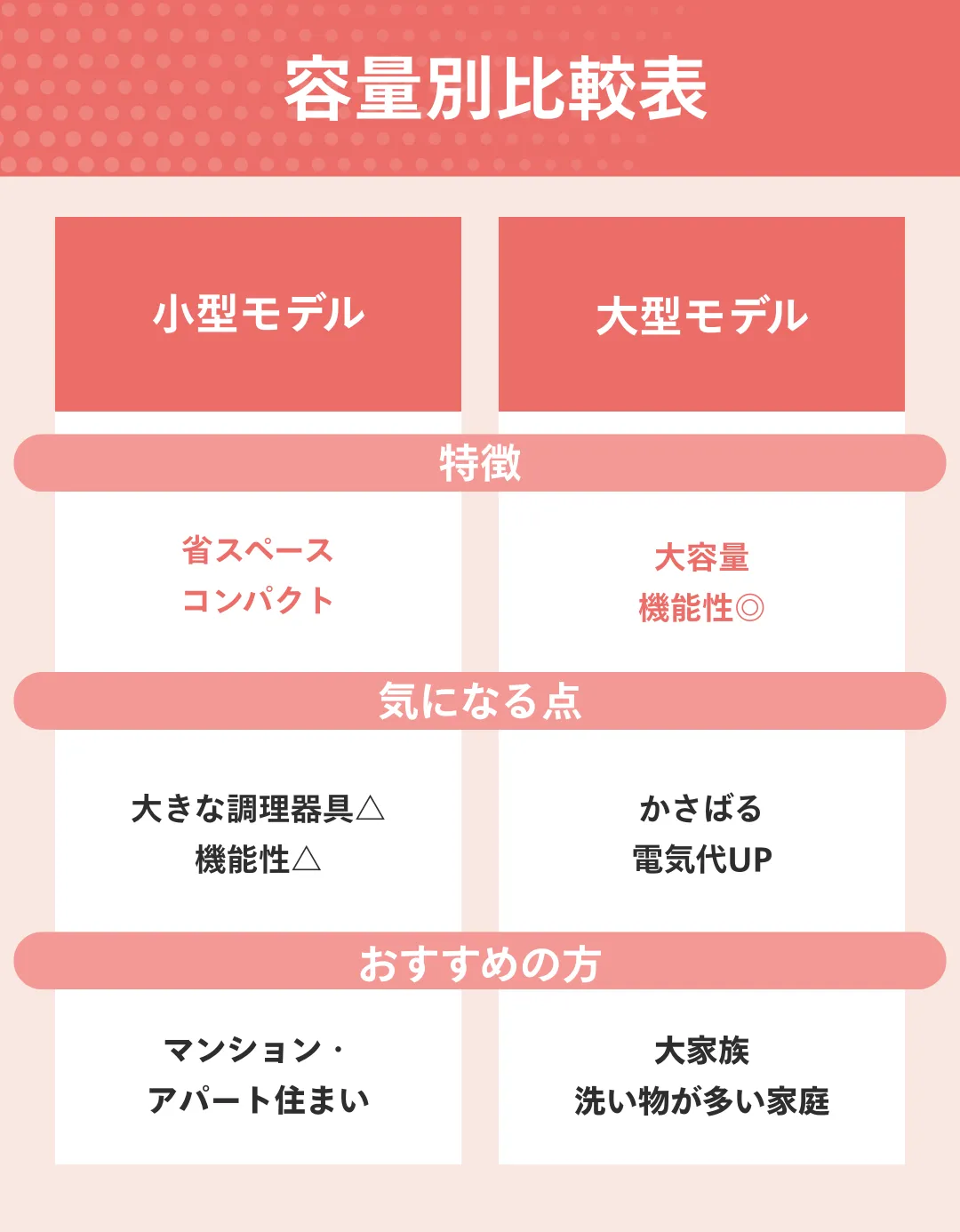 単身者・二人暮らしには3〜4人分程度の小型モデル