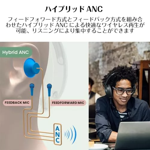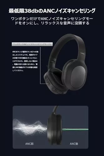 ANC機能が付いていて左側のボダンをONにすれば、騒音を効果的に低減しながら高音質を維持できます。2台のマルチポイント接続にも対応していますので、コスパ最強のヘッドホンを探している方におすすめです。