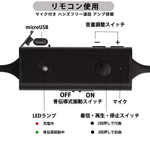ネックバンドタイプなので片耳をなくしてしまう心配がありません。また、リモコン付きで、スマホなど端末を触らなくても操作ができるのがポイントです。耳の下側にフックがくる構造を採用しており、メガネのフレームとも干渉しません。