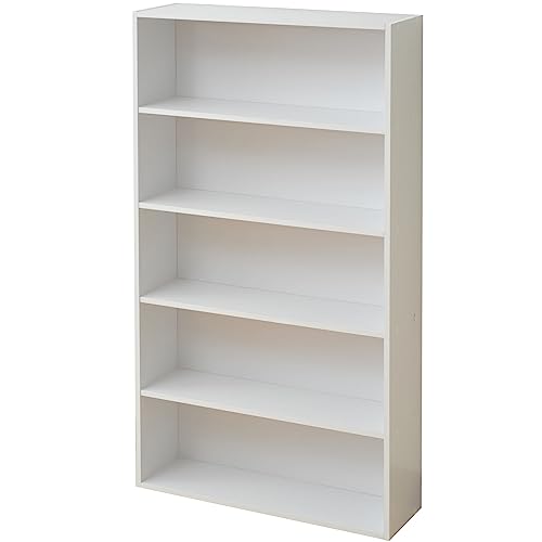スリム設計で、狭いスペースにも設置可能な5段本棚です。奥行17cmの省スペースデザインながら、コミック約200冊、文庫本約150冊、DVD約180枚を収納できます。各棚の高さは約20cmで、大判コミックやハードカバー本も収納可能です。