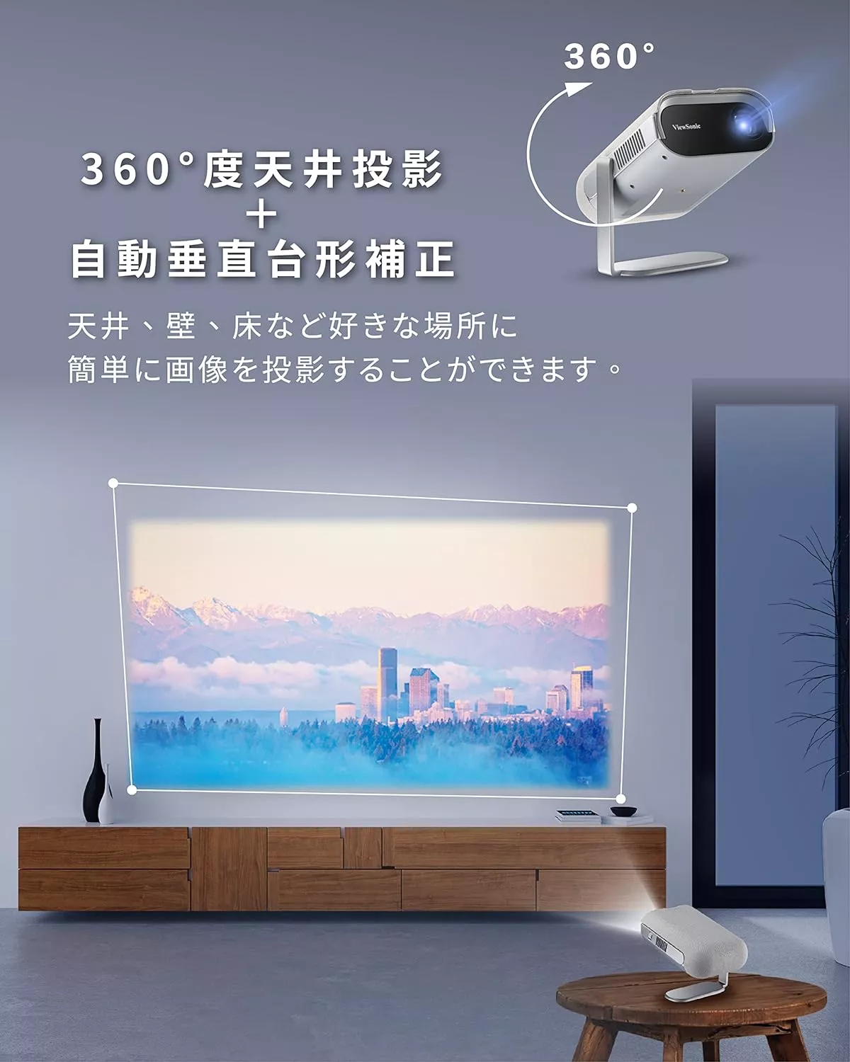省スペースで好きな場所に投影するなら「360°回転機能付き」がおすすめ