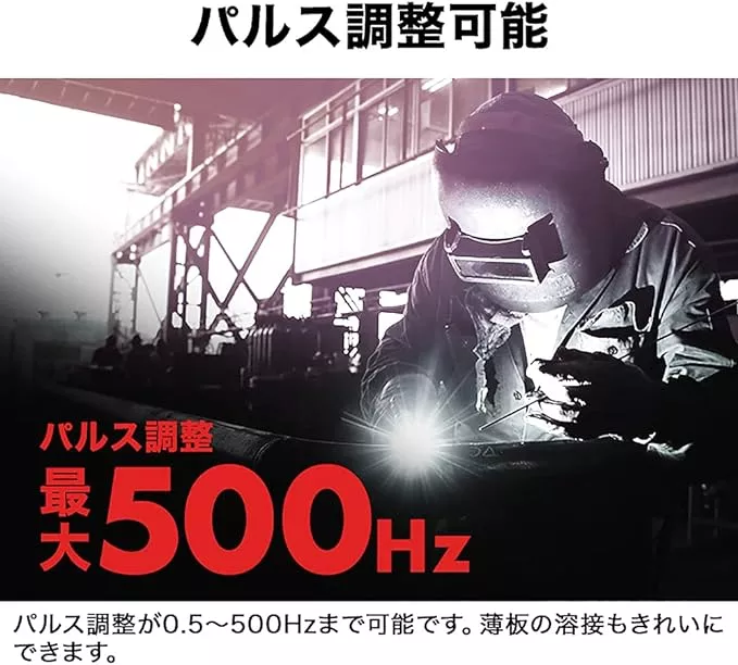 またパルス調整機能も搭載されているので高いパルス電流と低いベース電流の切り替えができ、厚みのある金属板だけでなく薄い金属板の溶接でも容易にできます。