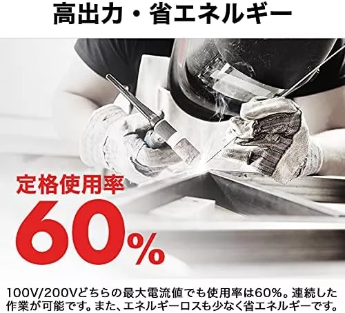 溶接機にはJIS規格によって定格使用率が決められており、10分間の内に何%の使用なら安全かを表しています。たとえば定格使用率60%なら、最大出力で溶接して6分間使用後に4分間の休憩が必要です。作業時間に合わせた使用率のモデルを選びましょう。