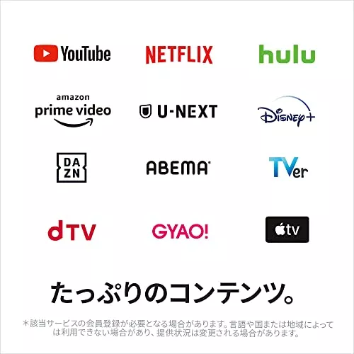 - 対応サービス:Youtube・Netflix・Hulu・Amazonプライムビデオ・TVer・Abema他