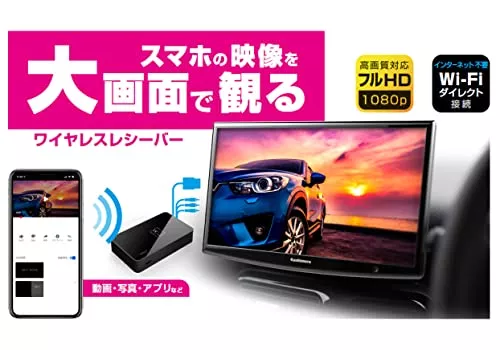 HDMI端子搭載のテレビなどに接続して、スマホ・タブレットの画面を共有できるワイヤレススクリーンレシーバーです。動画・画像・ゲームを大画面で楽しむほかに、会議の資料の共有などビジネスシーンでも活躍します。