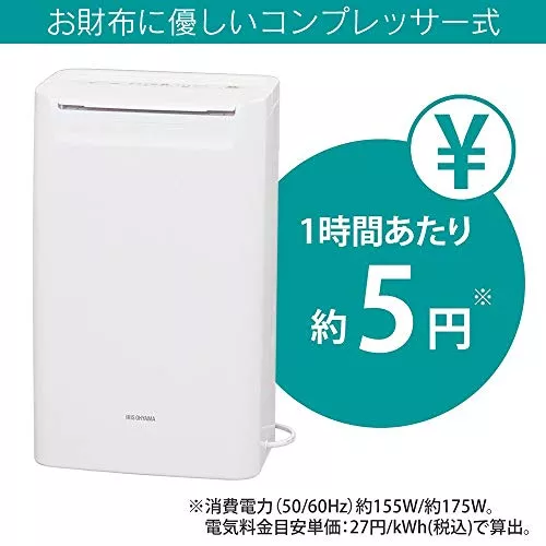 - 除湿可能面積(目安):50Hz:[木造]5m2(3畳)[プレハブ]8m2(5畳)[鉄筋コンクリート]10m2(6畳) 60Hz:[木造]5m2(3畳)[プレハブ]7m2(4畳)[鉄筋コンクリート]9m2(6畳)