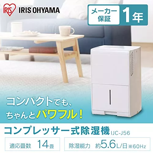 第1位 KIJC-J56 アイリスオーヤマ(IRIS OHYAMA) | ![]() | Amazon楽天ヤフー | オートオフや自動霜取りなど機能満載の除湿機 | 幅約25×奥行約23×高さ約38.3(cm) | 約8.8kg | コンプレッサー式 | (50Hz/60Hz)5L/5.6L(日) | (50Hz/60Hz)木造:6畳(10.4m2)/7畳(11.7m2) プレハブ:10畳(15.9m2)/11畳(17.8m2) | (50Hz/60Hz)140W/165W |
