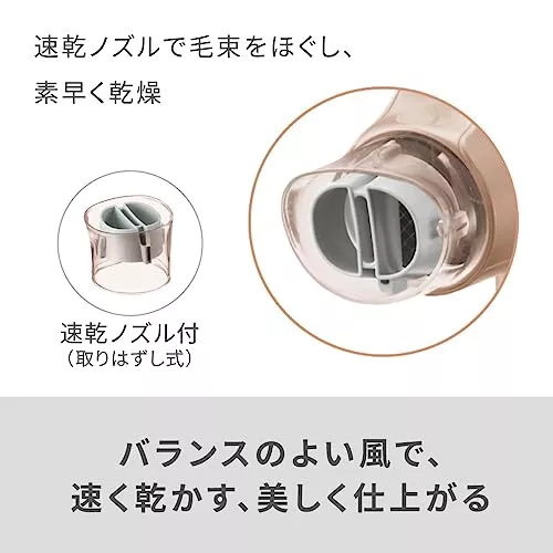 ノズルが長いタイプは、風が髪の毛に直接届きやすくなるため、速乾性に優れていますが、持ち運びには不便さを感じる場合もあります。一方、絹女やRefaのビューテック ドライヤー スマートのような製品ではスリムなノズルです。