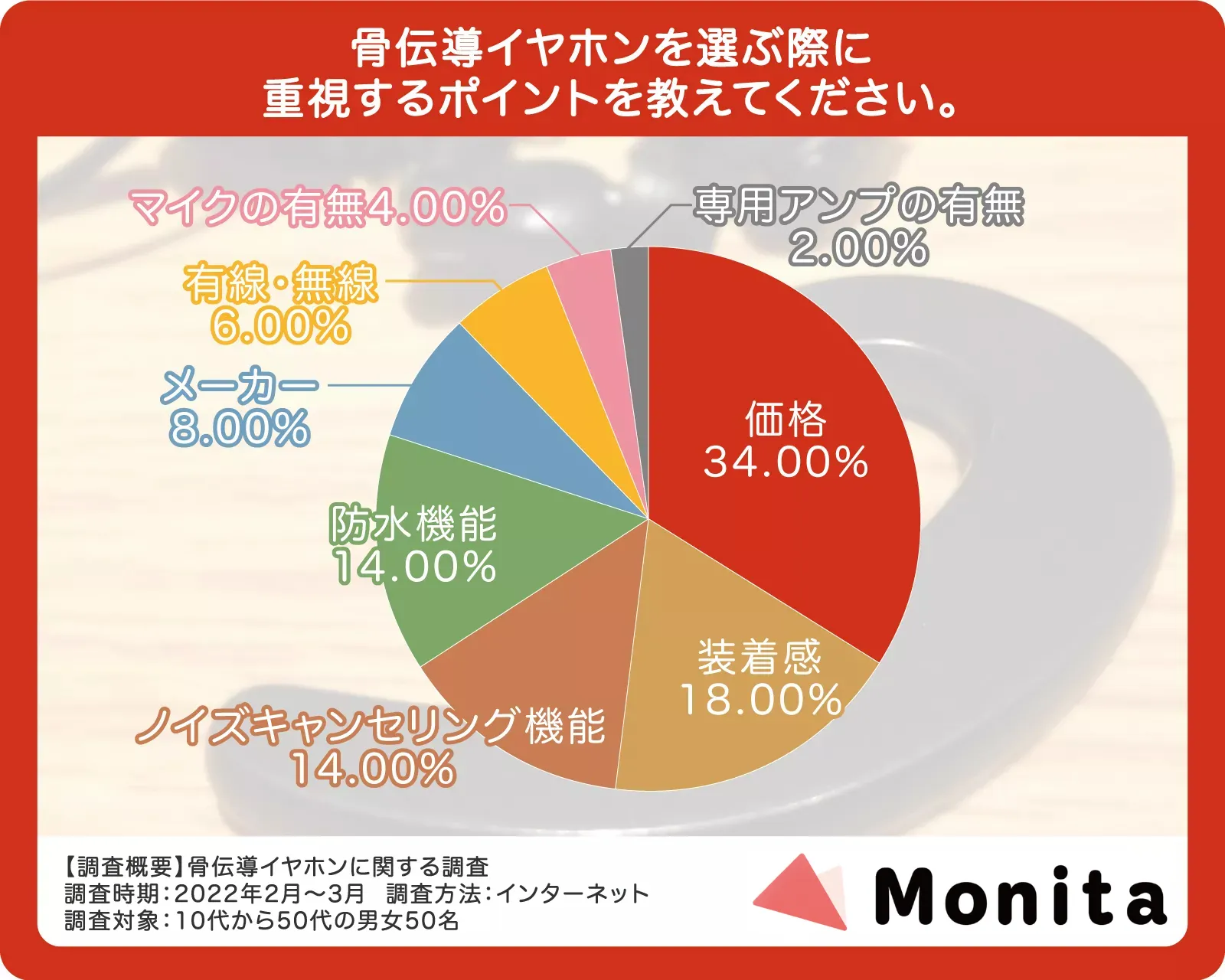 今回、骨伝導イヤホンを選ぶ際に重視するポイントを調査したところ、