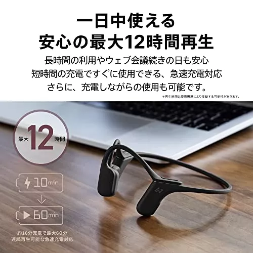 軽量で耳に優しいデザインのため、長時間の使用でも快適です。また、約6時間の連続再生が可能で、充電切れの心配も少ないです。