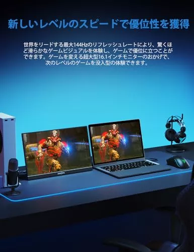 ・900gの軽量設計で、持ち運びが容易なモバイルゲーミングモニター