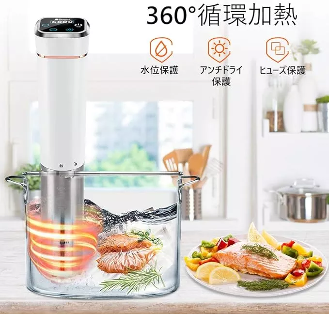 ワッションの人気低温調理器emperore tamarinは、プロ仕様の1200Wハイパワーを実現しています。大きな鍋を使っても約10分で60度に到達するので調理の時短が可能です。加熱ムラなどの失敗もしにくいので、料理初心者の方にもおすすめします。