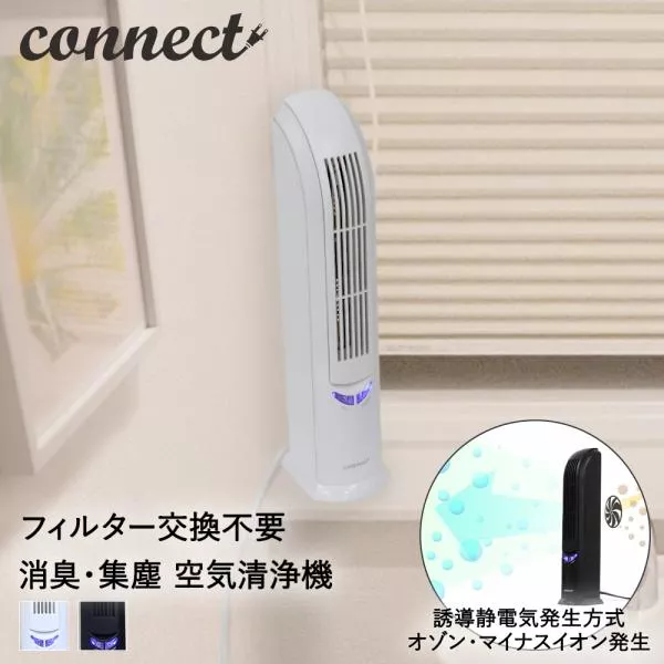 - 集じん方法:ファン式空気清浄機(浮遊物にイオンを帯電させる)