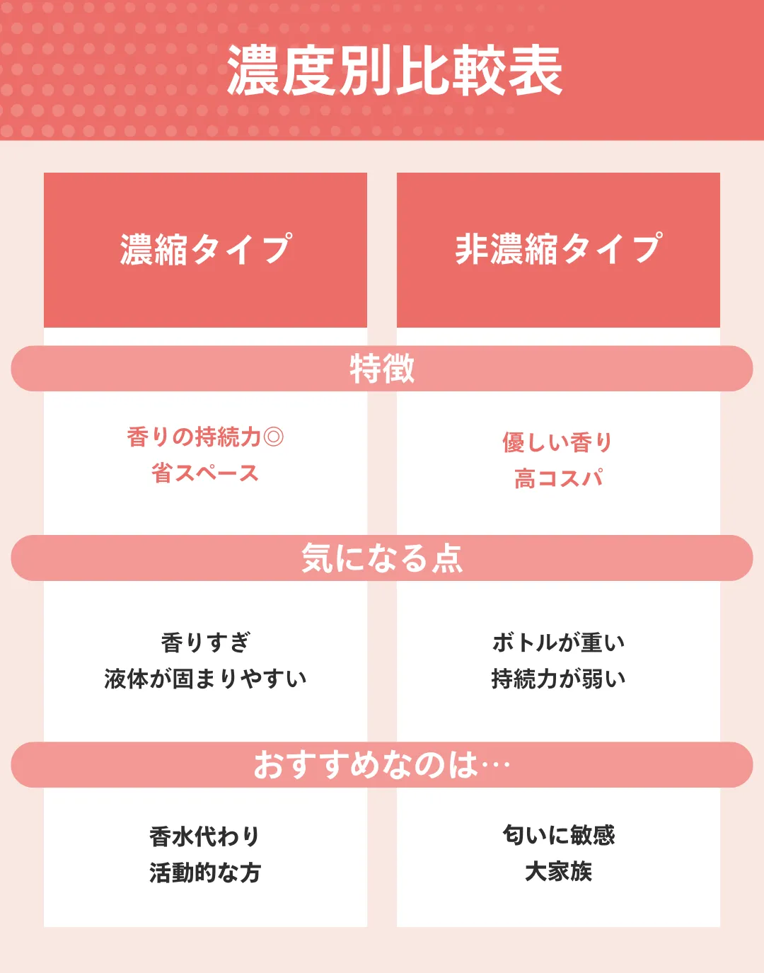 夕方まで香らせたいか、優しく香らせたいかの「濃縮度の違い」