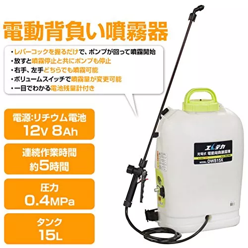 庭や畑の除草剤の散布に使ってます。エンジン式より軽くて便利です。1回の充電でかなりの面積が出来るのでおすすめします。