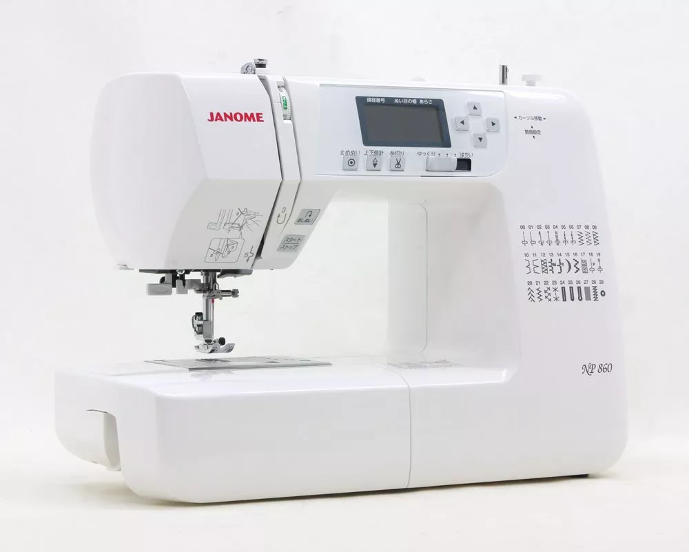 NP860は業務用レベルの機能を搭載した人気のコンピューターミシンです。自動糸切はもちろん6段階押え圧で、薄い生地から厚い生地までスムーズに縫えます。さらに軽量でフルサイズモデルなので、安定感もありながら、持ち運びもしやすいです。