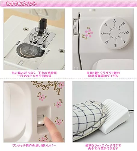 糸通しやボビンのセットもわかりやすく、初めての方でも簡単です。また、ダイヤルを回すだけで縫い目を替えられるので本格的な縫いものも楽しめます。付属のフットコントローラーを使えば、作業中でも両手を空けられるので便利です。