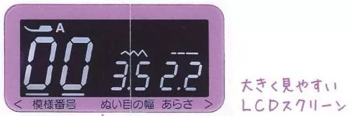 また、手元にはガイド線がついているので、縫い代・針落ち位置・コーナーリングも簡単にチェックできます。ほかにもいろいろな便利機能がついており、液晶は大きく、黒地に白の文字なので見やすいです。
