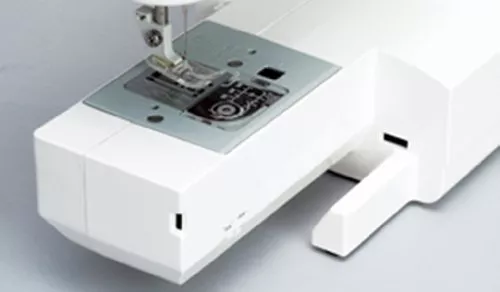 使わないときには、クローゼットや押入れにしまっても簡単に出し入れできます。2way仕様で、ミシンのスタートストップを手元・足もとのどちらでも操作可能です。そのときに必要なフットコントローラーもセットになっています。