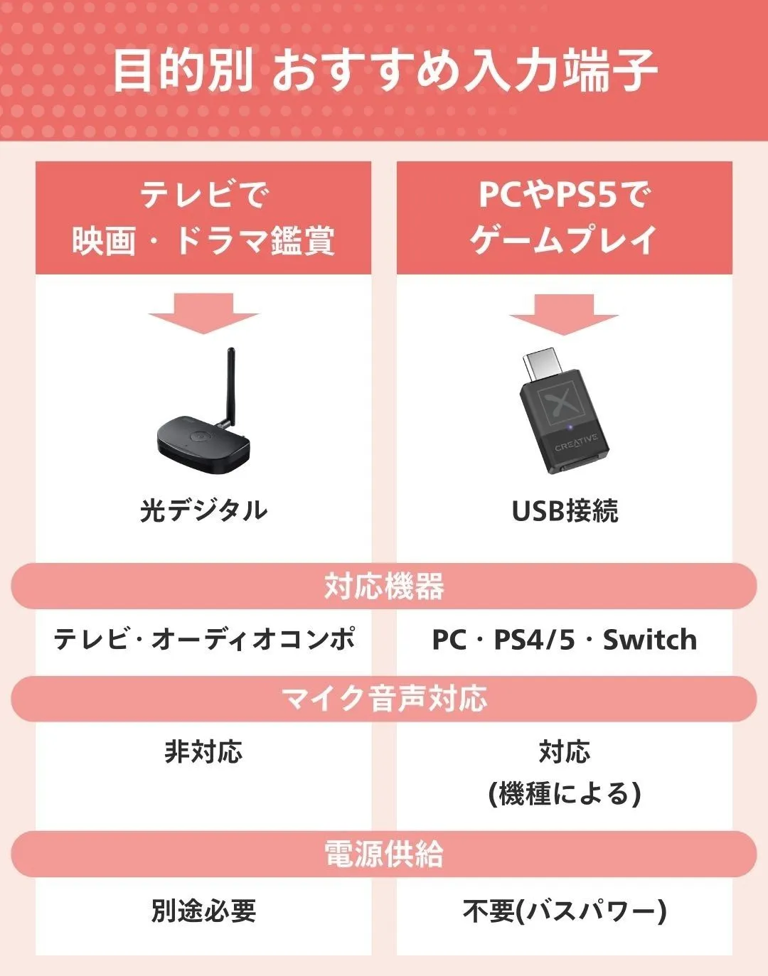 HP-BTW5 CREATIVE | ![]() | Amazon楽天 | PS5におすすめ! | Ver5.3 | - | - | 約50m(見通し距離) |