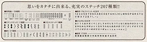 - 機能:模様縫い207種類、文字縫い、7枚送り歯、LED手元ライト、自動針糸通し、全自動ボタンホール